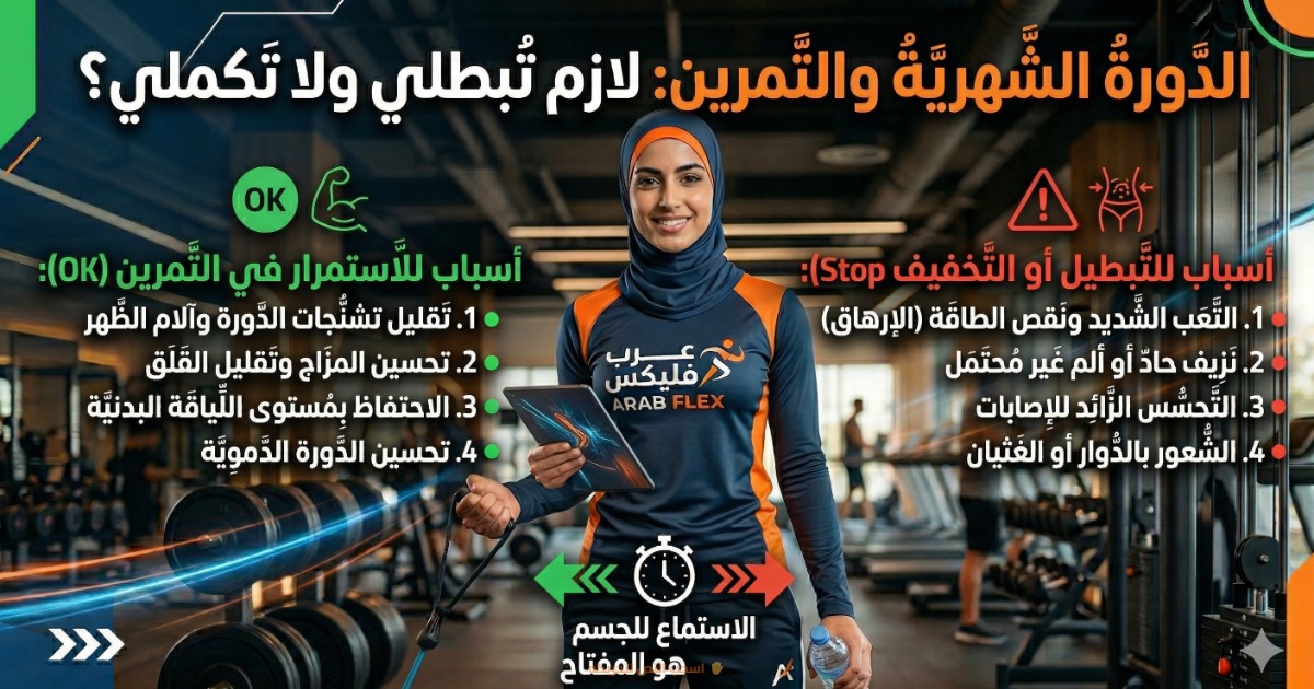 من أكثر الأسئلة تكراراً في الصالات الرياضية النسائية هو: “هل يمكنني التمرن وأنا في الدورة الشهرية؟” و”هل التمرين أثناء الحيض ضار؟” الأسئلة هذه تأتي غالباً بسبب الأفكار القديمة والخرافات المنتشرة. في هذا المقال العلمي من “عرب فليكس”، سنجيب على هذه الأسئلة بالتفصيل ونقدم دليلاً عملياً للتمرين خلال الدورة الشهرية.